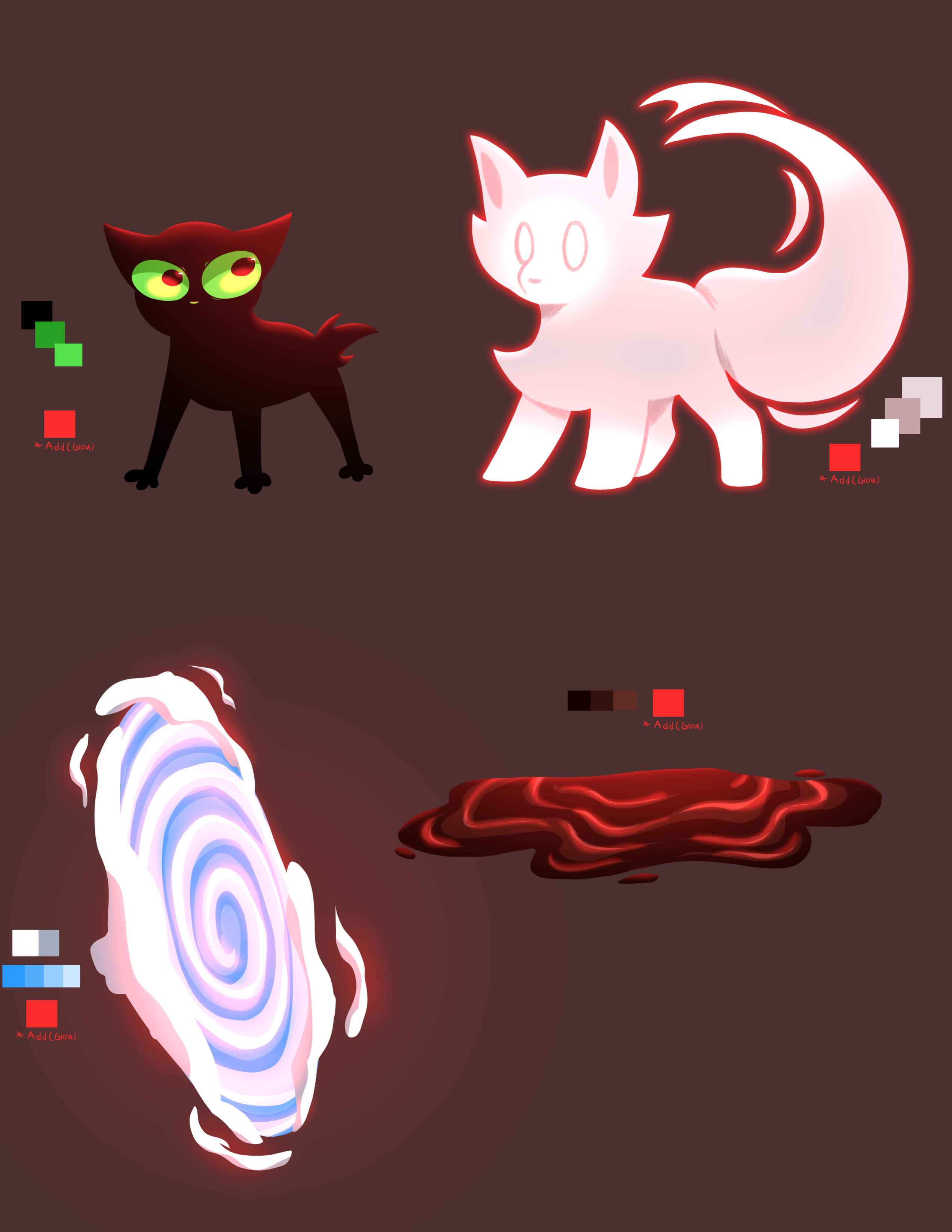 On the technical side of things, timing and color are some of the highest priorities in my work. I’m an absolute sucker for dramatic lighting that enhances the emotional value in a scene, vibrant palettes, and movement on the beat of music or other audio. Character work, however, is my focus above all else. From expression work to the building blocks of their person, I pride myself on my ability to take their concept and make it believable.I dabble in quite a bit, depending on where my interests are at the time! I live my life with a playlist on repeat, and a deep aspiration for indie projects, from animation to comics. Video games in particular have been a critical part of my artist journey, introducing me to character writing, and have since led me to coding and game development. Western and Japanese animation have had a strong influence on my visual style, and animal characters especially are among my favorite candidates for the shape language alone.